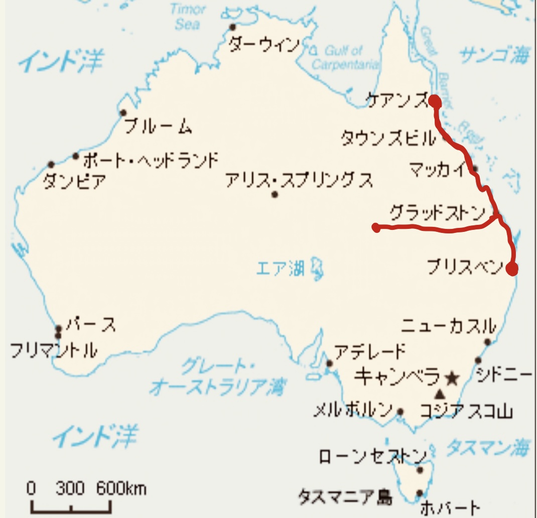 ケアンズからスタートし、途中、エメラルドという内陸の街を目指し、最終目的地をブリスベンに設定して、旅に出ました。